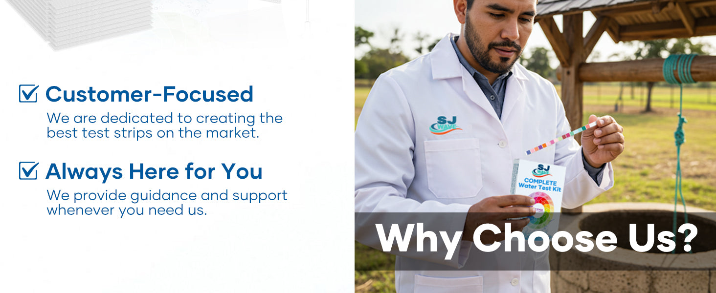 SJ Wave test kits make it simple to check your water’s quality. We are accurate, fast, and trusted by families worldwide.