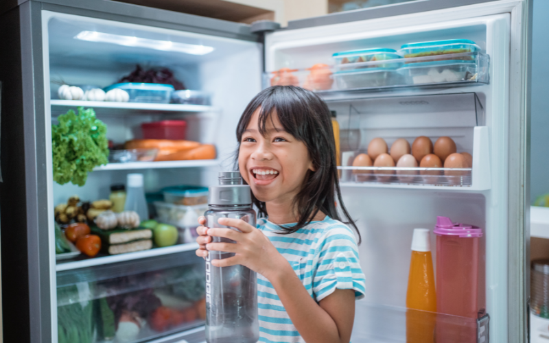 Let your kids bring their own water bottle to school. If possible ask the teacher if they can have it with them while having class so that they can drink anytime of the day. Make sure to get an insulated bottle that can keep your kid’s water cold throughout the day too.
