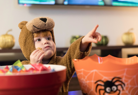 Avoid over eating by putting all the Holloween treats in the kitchen bar instead of in front of the TV and at the dining table. This way, they get to eat healthy meals and prevent them from snacking on their treats while watching TV. It will also discourage them from exerting effort in going to the kitchen bar just for a bar or two of candies.