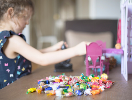 While a small amount of Holloween sweets is not going to break your child’s weight or your dental bill instantly, his trick-or-treat adventure may bring a week’s worth of candy bars, if not more. During this sugarloaded time of the year, the average child consumes about three cups of sugar or 144 teaspoons of sugar. Now that’s a lot of sugar!