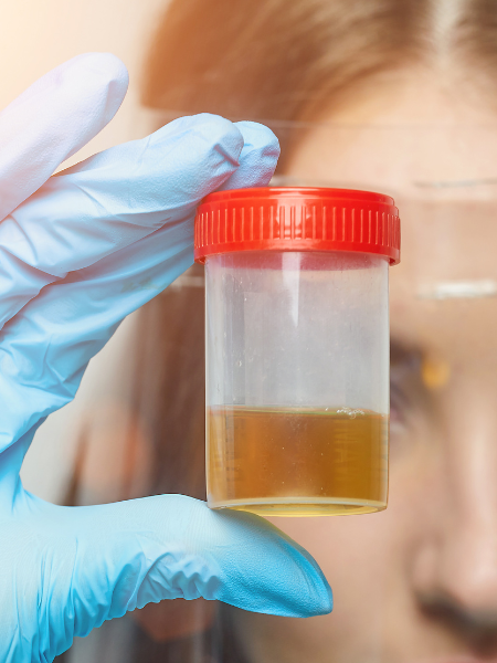 Dark yellow urine: Chronic dehydration can cause the body to retain fluid as the kidneys try to conserve liquid in the body, leading to a concentration of waste products in the urine as manifested by dark yellow or amber-colored urine.